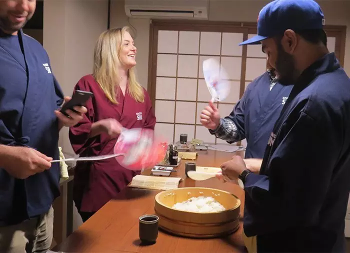 De Bento box is het Japanse antwoord op ons broodtrommeltje. Het is een bakje met rijst, vis of vlees, groente, sushi enz. Het is overal verkrijgbaar en het is de perfecte lunch. Vandaag kunt u uw eigen bento box leren maken. U begint volgens Japanse traditie met een kopje groene thee en krijgt een korte introductie van de koks, die goed Engels spreken.