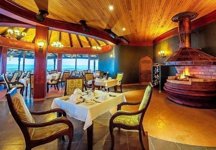 Het hoofdgebouw heeft een indrukwekkende lounge met bar en restaurant. Op koele avonden wordt de open haard binnen aangestoken – op warme avonden kunt u buiten van uw drankje genieten op het grote terras.