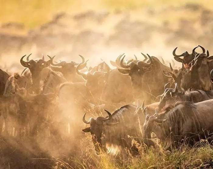 Van juli tot oktober kunt u de 1.200 km lange trek zien van meer dan een miljoen gnoes, honderdduizenden zebra’s en een heleboel Thompsongazellen, die op zoek zijn naar op zoek naar water en vers gras. Tijdens deze trek – bij het oversteken van de rivier de Mara – valt een groot aantal dieren ten prooi aan enorm grote nijlkrokodillen.