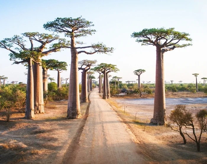 Het echte hoogtepunt van deze regio is de Avenue of the Baobabs. Ongeveer 20 km buiten Morondava vind je deze onverharde weg, die wordt geflankeerd door meer dan 20 eeuwenoude baobabbomen—sommige zijn bijna 800 jaar oud. Verspreid langs het grindpad richting het noorden staan deze bomen als surrealistische, natuurlijke sculpturen, zeker met hun vaak kale takken. Baobabbomen krijgen alleen bladeren tijdens het regenseizoen; zodra het droge seizoen begint, laten ze die weer vallen om water te besparen—wat hun beeldhouwwerk-achtige uiterlijk nog opvallender maakt.