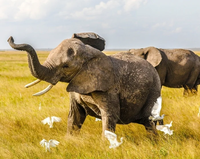 Na aankomst in Amboseli geniet u van een lunch in de lodge voordat u vertrekt voor uw eerste gamedrive in Amboseli. Rond het middaguur is de Kilimanjaro vaak gehuld in wolken, maar tegen het einde van de dag klaart de lucht meestal op, waardoor u kans heeft om schitterende foto’s te maken van olifanten die richting de bossen aan de voet van de berg trekken om daar de nacht door te brengen. Amboseli staat bekend om de grote kuddes olifanten, waarvan veel dieren indrukwekkende slagtanden hebben.