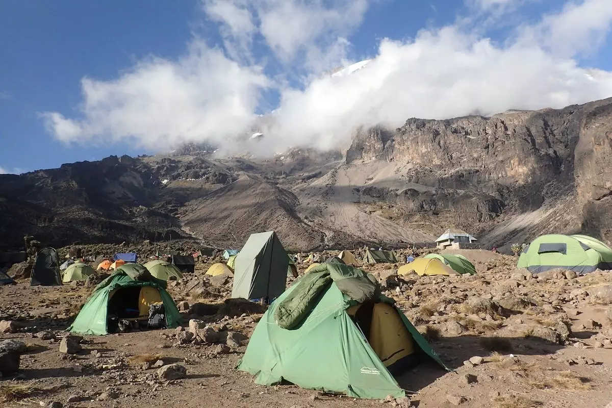 Alle overnachtingen vinden in tenten plaats, met uitzondering van de Marangu-route. Op die route vindt overnachting in primitieve slaapzaalachtige hutten plaats.