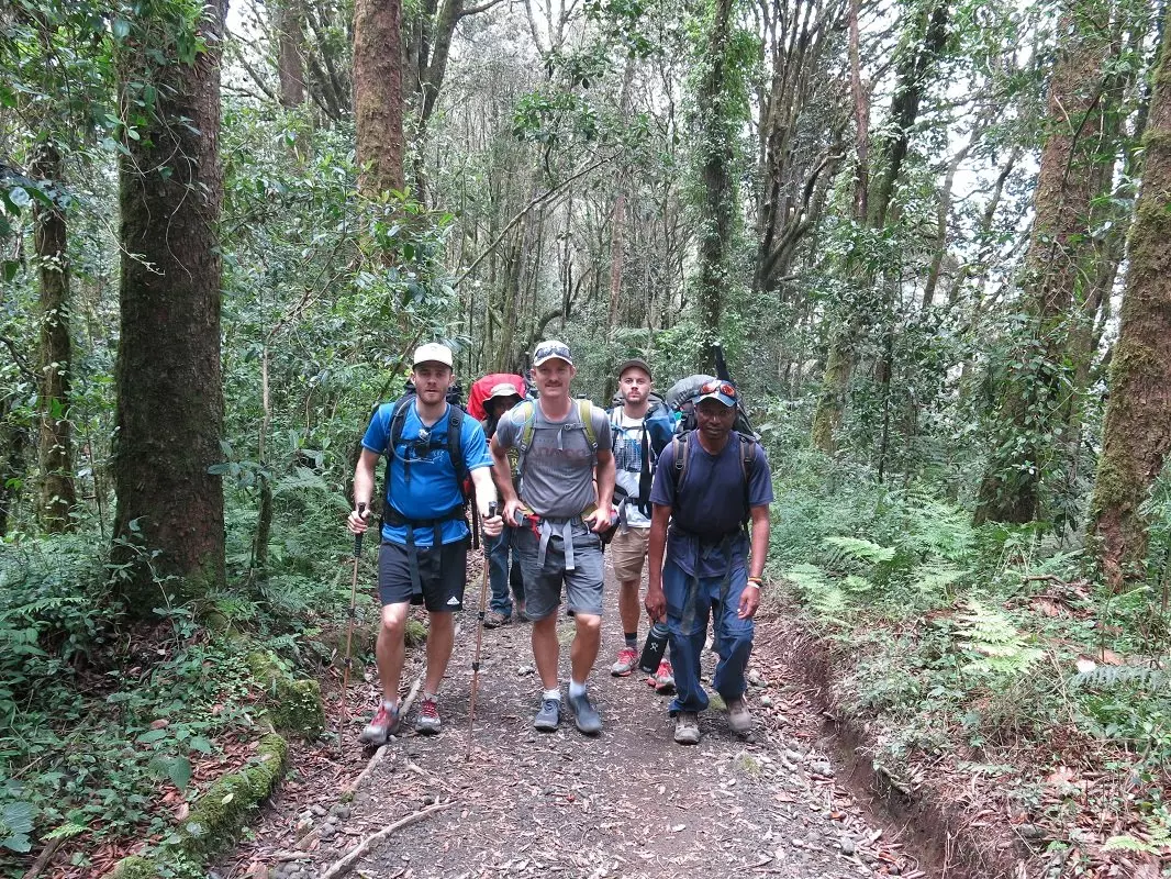 De laatste etappe is een gemakkelijke wandeltocht van 3 uur door het Nationaale Park naar de Mweka Gate. Hier checkt u uit, waarna u wordt teruggereden naar het dorp Moshi. In het hotel wacht u een heerlijke lunch en een – langverwacht – zalig warm bad. Iedereen die de klim heeft volbracht, krijgt een diploma uitgereikt.