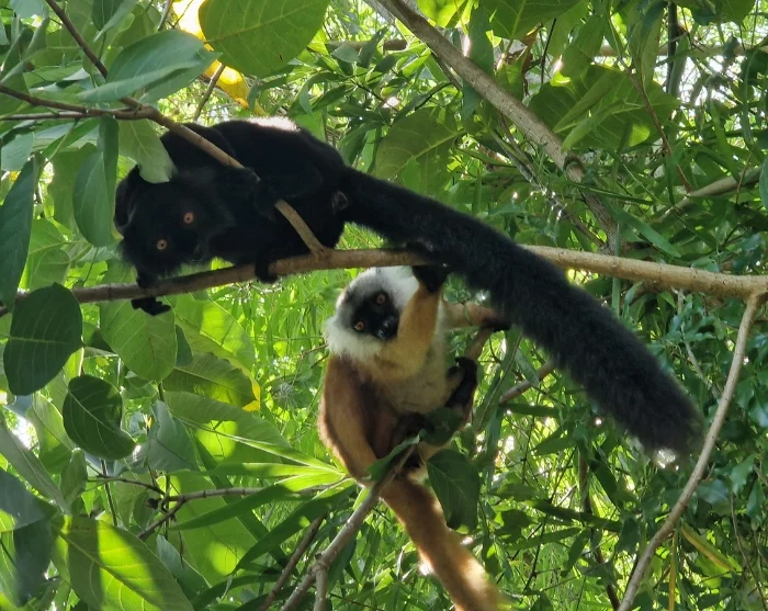 Met een beetje geluk spot de gids al snel een groep indri’s. Dan gaat u samen verder het bos in om deze bijzondere dieren in hun eigen leefomgeving te bewonderen. Meestal zitten ze hoog in de bomen, al springen de jongere groepsleden vaak speels tussen de lagere takken.