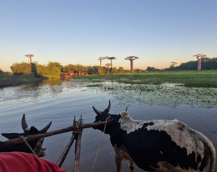 Na de rivier wordt het landschap weer vlakker en komen de rijstvelden terug in beeld. Zodra u de eerste baobabs aan de horizon ziet opdoemen, weet u dat Morondava in de buurt is.