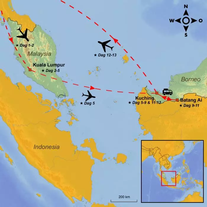 Na een paar dagen in Kuala Lumpur doorgebracht te hebben, is het tijd om in te pakken en door te vliegen naar het derde grootste eiland ter wereld: Borneo. Terwijl het eiland in het zuiden voornamelijk Indonesisch is, ligt het kleine land Brunei tussen de twee Maleisische staten Sabah en Sarawak in het noorden, en biedt een prachtig palet aan spectaculaire natuur en wildlife-ervaringen.