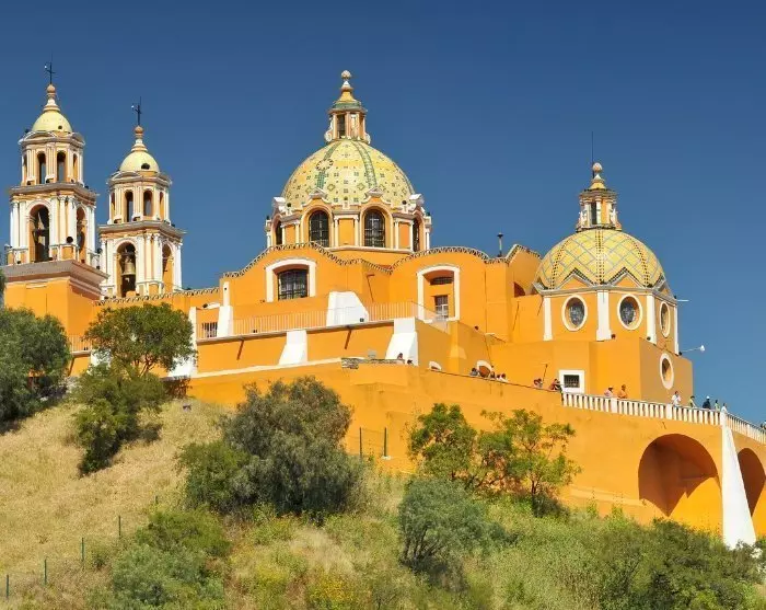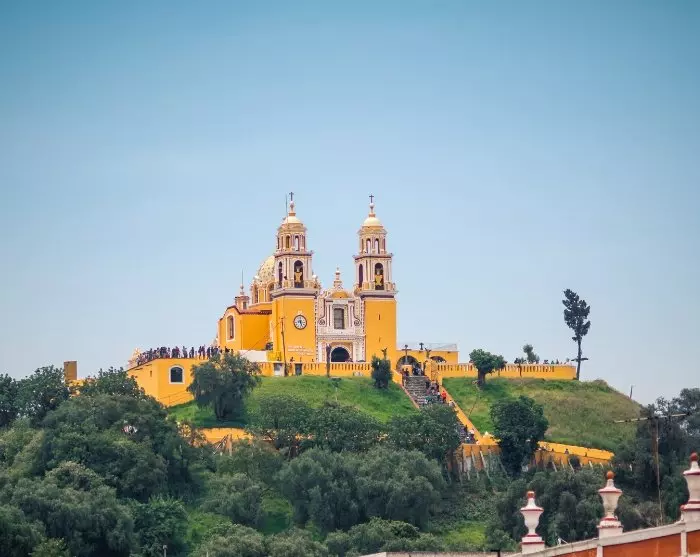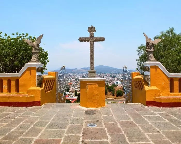 Na het ontbijt wordt u opgehaald bij uw hotel en naar de Cholula-ruïnes gebracht. Onderweg naar Cholula kunt u ontspannen en genieten van het uitzicht op de indrukwekkende vulkanen Popocatepetl en Iztaccíhuatl in het prachtige landschap.