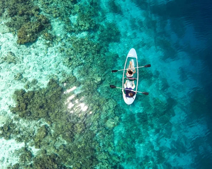 Deze vroege ochtendexcursie nodigt u uit om in een transparante kajak over het kristalheldere water te glijden terwijl de zon langzaam boven de horizon opkomt en de lucht goud kleurt.