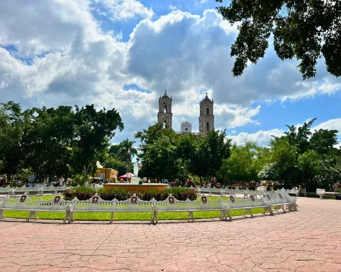 Sluit uw middag af in Parque Francisco Cantón Rosado, het levendige, centrale plein waar het lokale leven bruist. Aan dit plein ligt ook de prachtige Catedral de San Gervasio, met zijn indrukwekkende torens hoog boven het stadsbeeld uit.