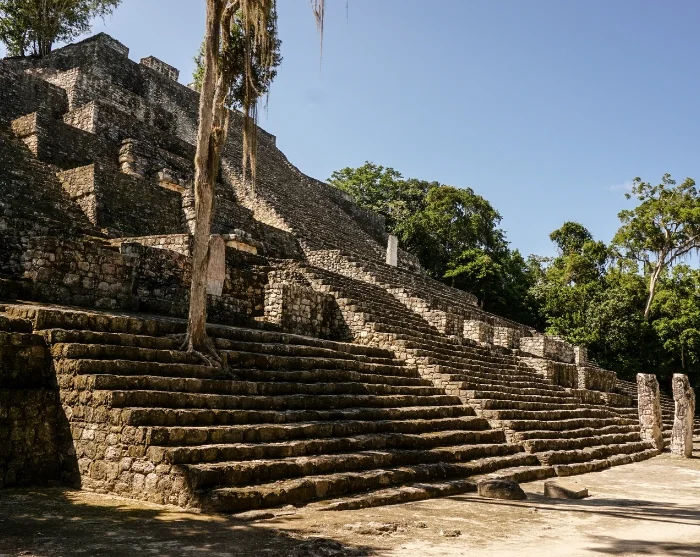 Voel u even Indiana Jones terwijl u een van de hoogste Mayaruïnes, structuur II, beklimt. Deze torent zo’n 45 meter boven de jungle uit. Vanaf de top wordt u beloond met een adembenemend uitzicht boven het bladerdak van het regenwoud—en bij helder weer ziet u misschien zelfs de ruïnes van de rivaliserende stad Tikal in het verre Guatemala.