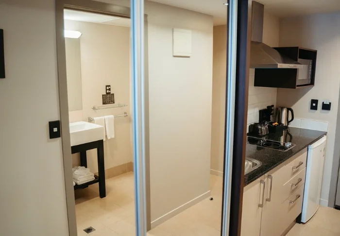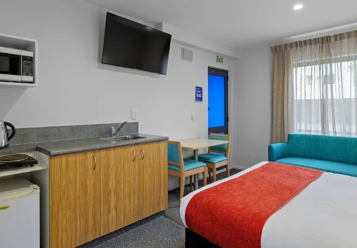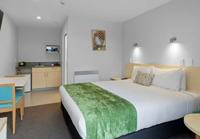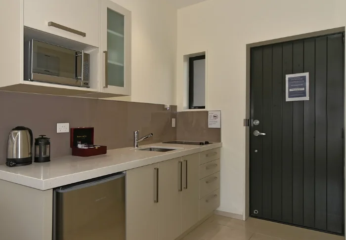 De 25 ruime units zijn licht en gastvrij ingericht en beschikken elk over een eigen badkamer en een goed uitgeruste kitchenette met een magnetron, koelkast en kookplaat – ideaal om zelf eenvoudig een maaltijd klaar te maken.