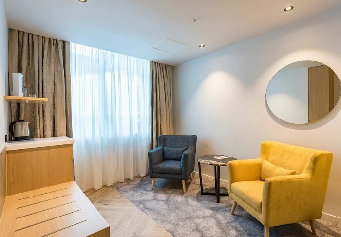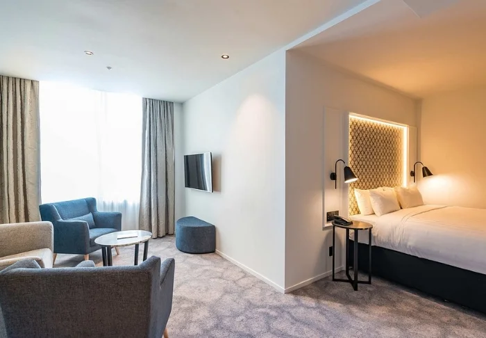 Het hotel is stijlvol en modern ingericht, met veel aandacht voor comfort en kwaliteit. In totaal zijn er 88 kamers, allemaal voorzien van grote ramen voor veel natuurlijk licht. U slaapt op een kingsize bed of twee éénpersoonsbedden en beschikt over een eigen badkamer, airconditioning, bureau, kluisje, strijkfaciliteiten en een Smart TV. Daarnaast geniet u van gratis wifi, een waterkoker en gratis thee, koffie en warme chocolademelk op de kamer.