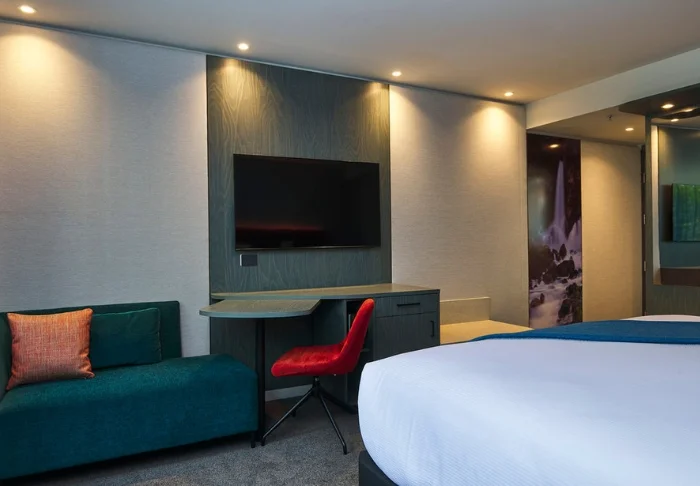 Het hotel is modern en stijlvol ingericht, waarbij zowel comfort als duurzaamheid centraal staan. Er zijn in totaal 86 kamers, elk voorzien van een eigen badkamer, minibar, kluisje, smart-tv, bureau, waterkoker en koffie- en theefaciliteiten. Tijdens uw verblijf maakt u standaard gebruik van gratis wifi.