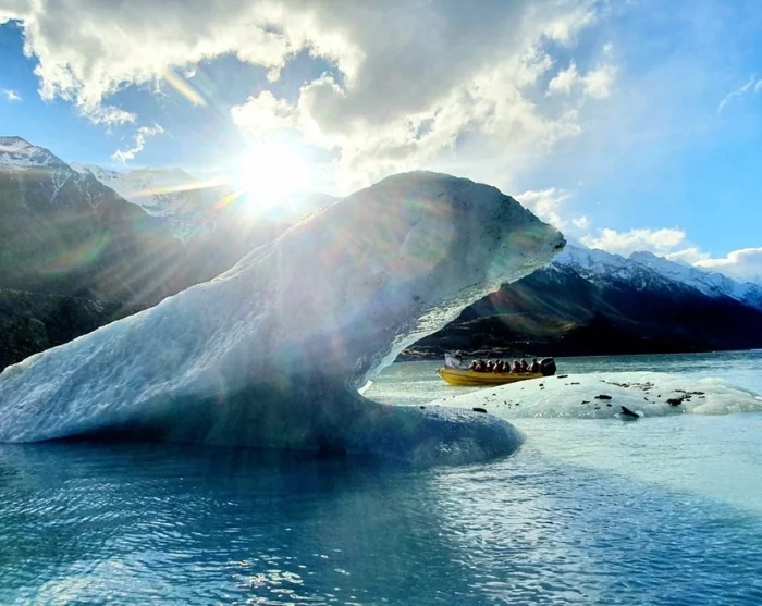 Ga met ons mee op een boottocht over het Tasmanmeer en beleef de Tasman-gletsjer van heel dichtbij.