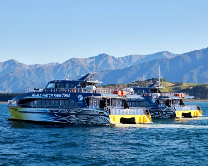 Na het parkeren van uw auto en het inchecken bij Whale Watch Kaikoura (minimaal 30 minuten voor vertrek), wordt u per bus naar South Bay Marina gebracht (ongeveer 10 minuten rijden). Daar stapt u aan boord van een moderne catamaran die speciaal is ontworpen voor walvisspotten. De kapitein en bemanning staan klaar om u de beste kans te geven om walvissen, andere zeedieren en zeevogels te spotten.