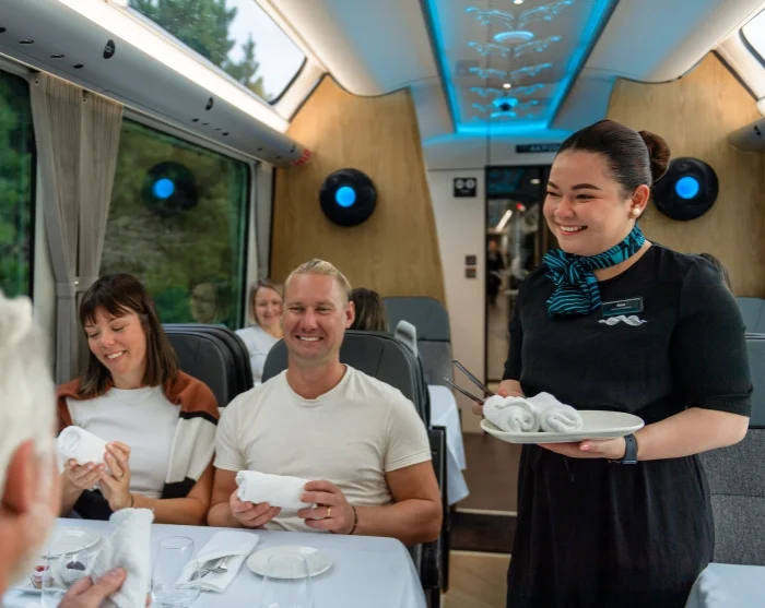 Tegen een toeslag kunt u upgraden naar Scenic Plus, met gereserveerd dineren op uw stoel en extra comfort.