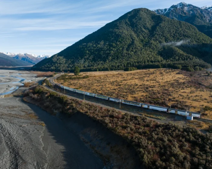 Ervaar de indrukwekkende landschappen van Nieuw-Zeeland tijdens een onvergetelijke treinreis over het Zuidereiland, van Greymouth aan de ruige westkust naar Christchurch aan de oostkust, aan boord van de legendarische TranzAlpine.