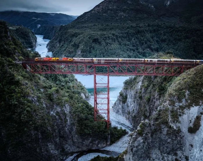Houd uw camera gereed als de trein het spectaculaire Staircase Viaduct oversteekt, waarbij het spoor 73 meter boven Staircase Creek, een zijriviertje van de Waimakariri-rivier, wordt getild. Net als de Otira Tunnel is dit viaduct een staaltje ingenieurskunst.