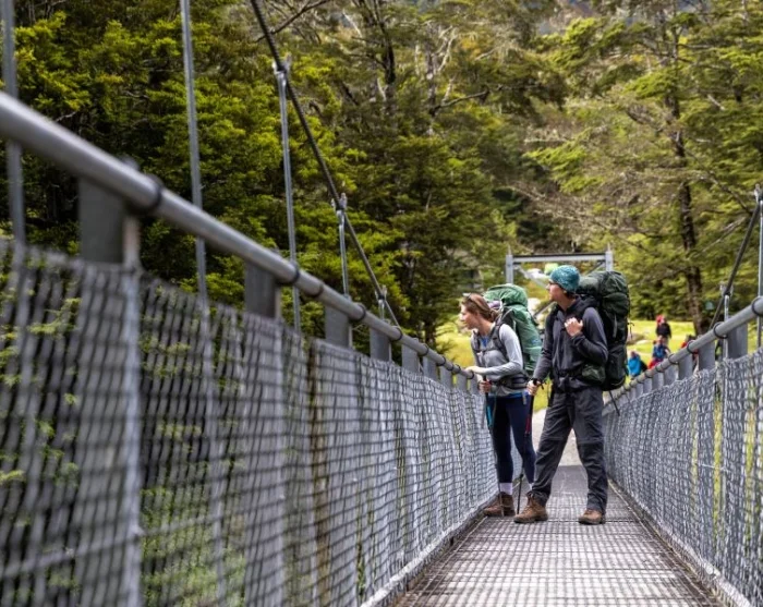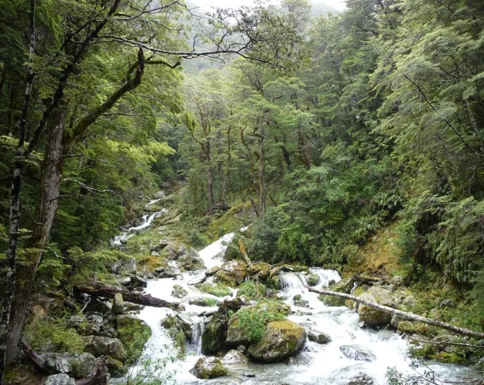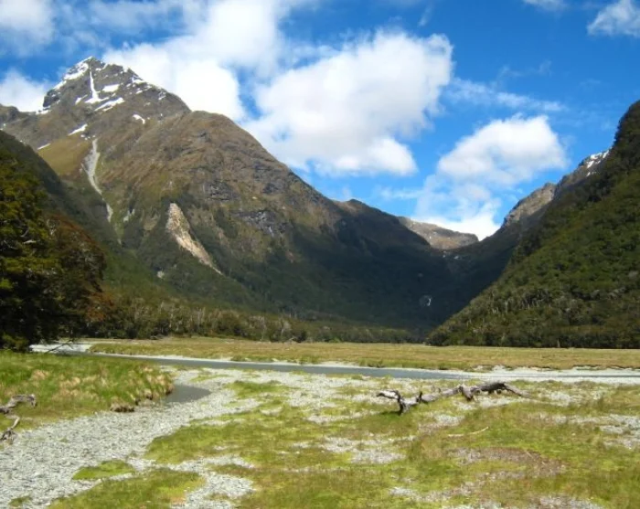 De wandeling begint met een oversteek via een hangbrug hoog boven de Routeburn rivier, waarna u de betoverende beukenbossen in loopt. Het pad is licht glooiend en goed begaanbaar, waardoor u alle tijd heeft om te speuren naar vogels tussen de boomtoppen. Met wat geluk ziet u het kleinste vogeltje van Nieuw-Zeeland, het rifleman (Acanthisitta chloris), of de zeldzame geelkop mohua (Mohoua ochrocephala), die alleen in Nieuw-Zeeland voorkomt.