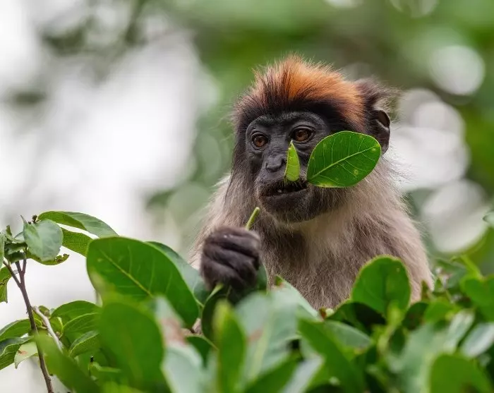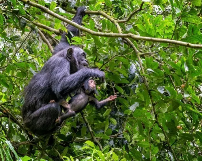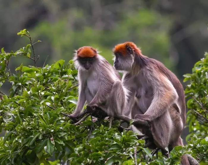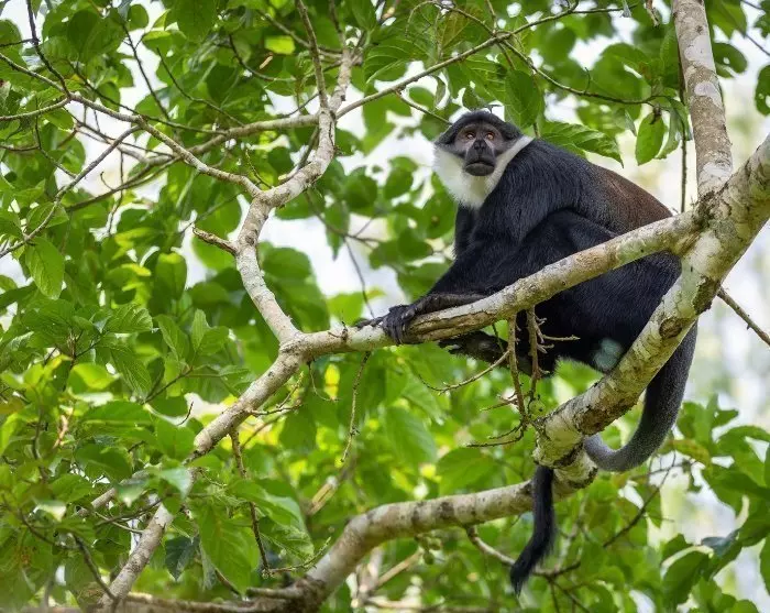 Terwijl Murchison Falls een rijke diversiteit aan landschap biedt met rivier, savanne, moeras en bos, bestaat Kibale voornamelijk uit dicht, vochtig regenwoud. Het is een van de beste plekken in Afrika om primaten in het wild te zien. De chimpansee is wellicht de bekendste, maar het bos is ook de thuisbasis van rode colobusapen, zwart-witte colobusapen, de opvallende L’Hoests aap, en verschillende andere soorten.