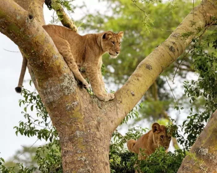 Na het ontbijt vertrekt u naar Bwindi Impenetrable Forest. Maar eerst is er een game drive door het zuidelijke deel van Nationaal Park Queen Elizabeth in een gebied dat Ishasha heet. Deze vlakten zijn vooral bekend om de boomklimmende leeuwen, die graag rusten op de takken van grote Afrikaanse vijgenbomen.