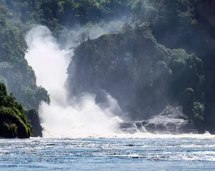 Een van de grootste hoogtepunten bij Murchison Falls is waar de 500 meter brede (Witte) Nijl door een slechts 7 meter brede kloof dondert en van 45 meter hoog naar een lager gelegen rivier stort. De aanblik van het bulderende, schuimende water is een indrukwekkende herinnering aan de krachten van de natuur.