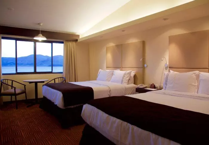 Het hotel heeft 62 kamers, allemaal met tv, airconditioning, een minibar, wifi, een kluis en een eigen badkamer met een haardroger. Vanuit de kamers met uitzicht op het meer kun je genieten van een prachtig panoramisch uitzicht over het meer, dat wordt omringd door bergen. Behoorlijk magisch!