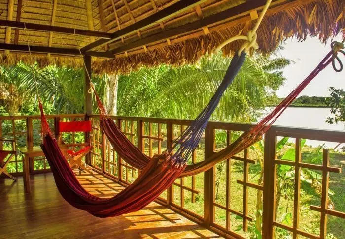 De lodge beschikt over 27 comfortabele bungalows en een “Casa Grande” met 4 aparte kamers. Alles is gebouwd van hout en de inrichting is eenvoudig, maar de bedden zijn voorzien van een muggennet, u heeft een eigen badkamer met warm water, een kluisje en een eigen terras met hangmatten waar u kunt liggen luisteren naar het kabbelende water van de rivier en de exotische geluiden uit de jungle.