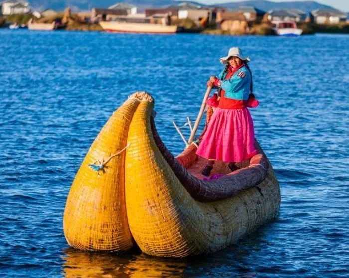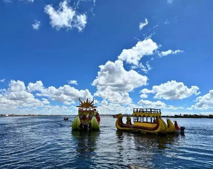 Je vaart eerst uit de haven naar de drijvende rieteilanden, Islas Uros, die nog steeds worden bewoond door de Uros. De Uros gebruiken de gratis bouwmaterialen van het meer, de sterke totorarieten, om eilanden, huizen en boten te bouwen. Ondanks dat de eilanden een beetje commercieel zijn geworden, is het nog steeds fascinerend om meer te weten te komen over de cultuur en oude tradities van de Uros en niet in de laatste plaats om hun indrukwekkende vakmanschap te zien.