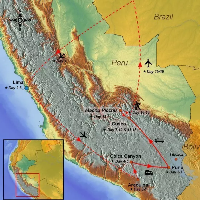 Trek je wandelschoenen aan en wandel over de legendarische 4-daagse Inca Trail naar Machu Picchu. De reis brengt je ook naar Lima, Arequipa, de Colca Canyon, het Titicacameer en de oude hoofdstad van de Inca’s, Cusco.