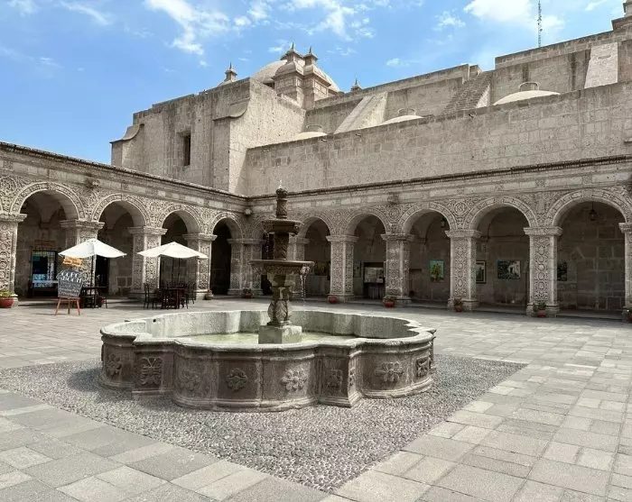 Vervolgens bezoek je Arequipa’s grootste bezienswaardigheid, het Santa Catalina-klooster, dat ooit meer dan 400 nonnen huisvestte. Santa Catalina werd in 1580 gesticht door een rijke weduwe met de naam Maria de Guzmán. Het was voornamelijk gericht op de hogere klassen, voor wie het in de koloniale tijd gebruikelijk was dat het tweede kind van het gezin de kerk diende. De meisjes werden op driejarige leeftijd naar het klooster gebracht en kwamen nooit meer buiten de muren.