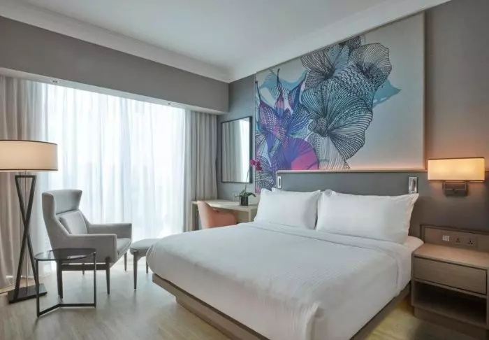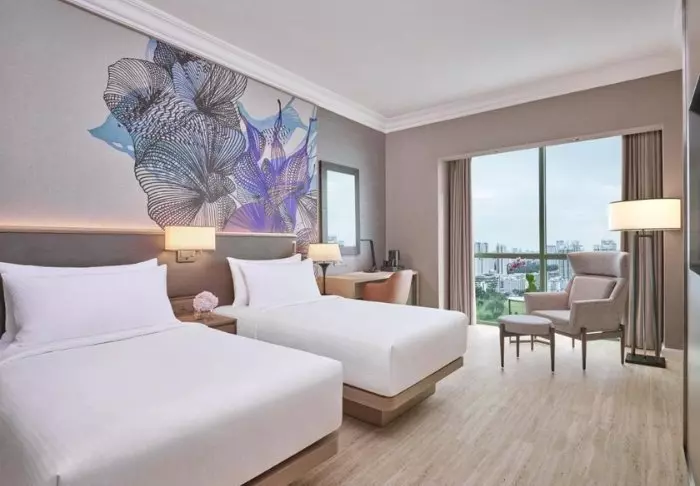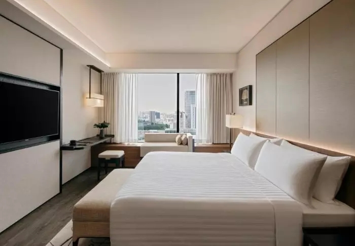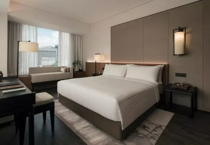 Het hotel heeft een elegante, comfortabele sfeer die is doorgevoerd in de 386 kamers van het hotel. Alle kamers zijn stijlvol en comfortabel ingericht en geven uitzicht op de indrukwekkende skyline van Singapore. De kamers zijn min. 32 m2 groot en van alle gemakken voorzien voor een aangenaam verblijf, zoals wifi, airconditioning, kluisje, minibar, koffie- en theefaciliteiten en een strijkijzer en strijkplank. De badkamer is eveneens ruim en voorzien van een douche of bad, toiletartikelen en een föhn.
