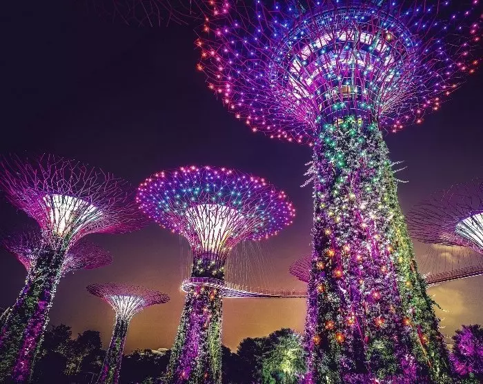 Nu je toch in de buurt bent, kun je ervoor kiezen om te genieten van het prachtige uitzicht op Gardens by the Bay, waar de licht- en muziekshow Garden Rhapsody de tuin verlicht in alle kleuren van de regenboog.