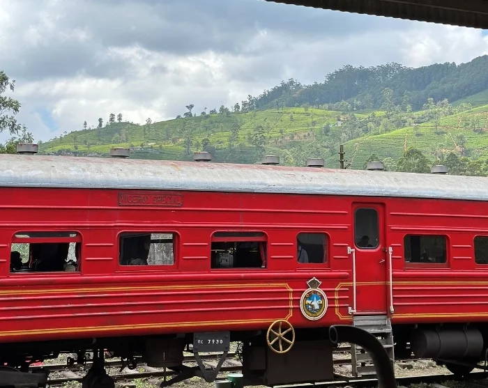 Bij aankomst in Nanu Oya stapt u in de klassieke trein, die traag door de weelderige hooglanden van Sri Lanka slentert. Ga lekker zitten en geniet van uw ingepakte snacks terwijl de trein door zachte bochten kronkelt en uitzichten ontvouwt van levendig groene theeplantages, mistige bergtoppen, en kleine dorpen waar kinderen enthousiast glimlachen en zwaaien.