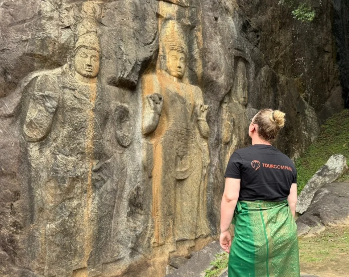Vervolgens reist u naar de Buduruwagala tempel, daterend uit de 10e eeuw en bekend om zijn goed bewaarde rotsgravures. De tempel bestaat uit een grote rotswand met een 16 meter hoog Boeddhabeeld omgeven door zes kleinere figuren die Boeddha in verschillende meditatieve houdingen afbeelden. Hun serene uitdrukkingen zijn op uw gemak te bewonderen, aangezien Buduruwagala een stiller bestaan ervaart dan de tempels die u eerder heeft bezocht.