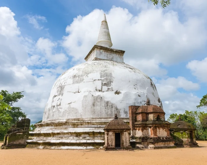Onderweg komt u talloze koepelvormige stoepa’s tegen, zoals de Rankot Vihara, Kiri Vihara Dagoba en Pabalu Vehera, verspreid over het landschap. De bijzondere Satmahal Prasada doet zelfs denken aan een Maya-piramide. U ziet hier ook het oude irrigatiesysteem, een levend bewijs van koning Parakramabahu’s visie dat geen druppel regen verloren mocht gaan. Dit immense systeem, met gigantische waterreservoirs en een netwerk van onderling verbonden kanalen richting Polonnaruwa, blijft bezoekers vandaag de dag fascineren.