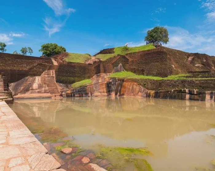 Eenmaal op de vlakke top van de rots vindt u een onvergetelijk uitzicht. Hier kunt u genieten van het panoramische uitzicht over de oude paleisruïnes met zijn grachten, waterpartijen en weelderige tuinen. Aan de horizon strekt zich een groene zee van jungle, bergen en dorpen uit, met in de verte de Pidurangala-rots.