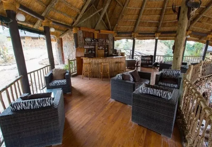 Een van de twee restaurants van de lodge ligt hoog op een kopje en biedt een uniek uitzicht over de omgeving. Het tweede restaurant bevindt zich in het hoofdgebouw, waar je ook de receptie en een gezellige loungeruimte met stoelen en tafels vindt.