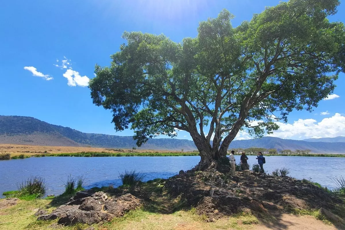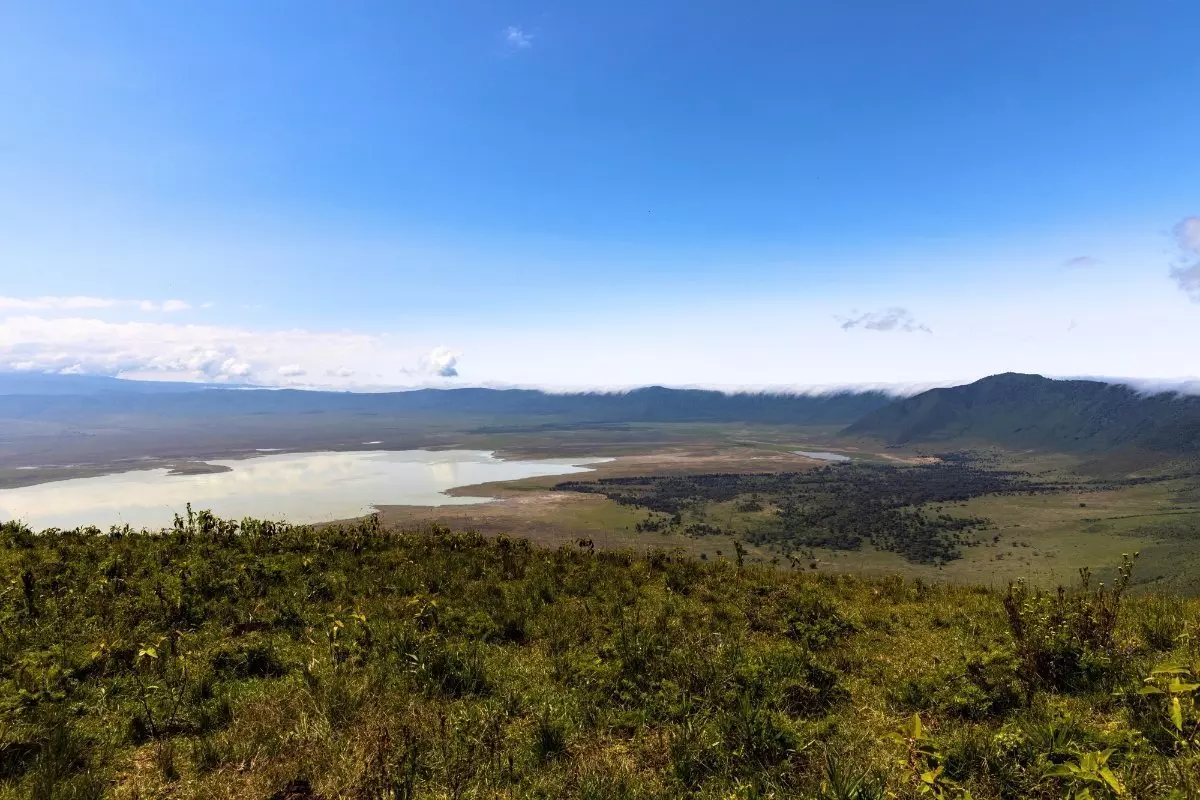 Olifanten, zebra’s, gnoes, buffels, leeuwen, flamingo’s, nijlpaarden, antilopen, ooievaars, hyena’s, jakhalzen – en de bedreigde zwarte neushoorn. De kraterbodem zelf is vlak, 260 km2 groot en de kraterwand torent de 600 meter boven u uit. Het voelt alsof je op de bodem van de wereld bent, maar in feite ligt de kraterbodem 2000 meter boven zeeniveau.
