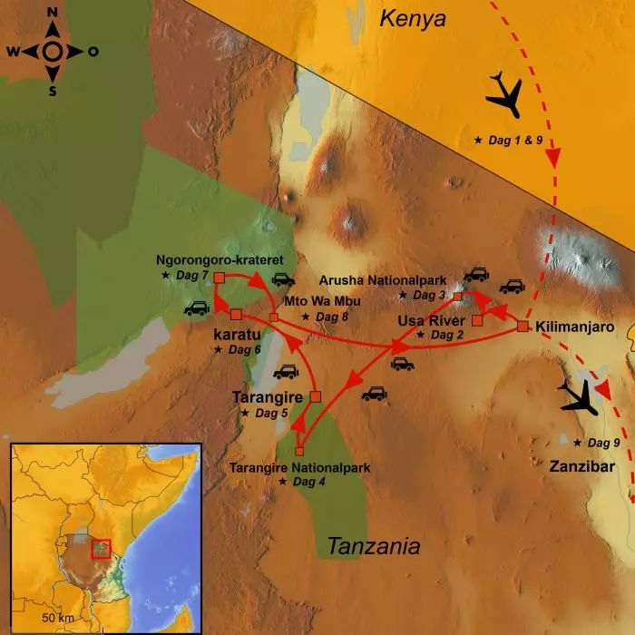 Vandaag komt u aan in Kilimanjaro in Tanzania. Uw plaatselijke gids wacht u op in de luchthaven en rijdt u naar uw hotel. Hier heeft u twee overnachtingen. De rest van de dag is ter vrije besteding om te “landen” in Afrika en misschien een duik te nemen in het zwembad?