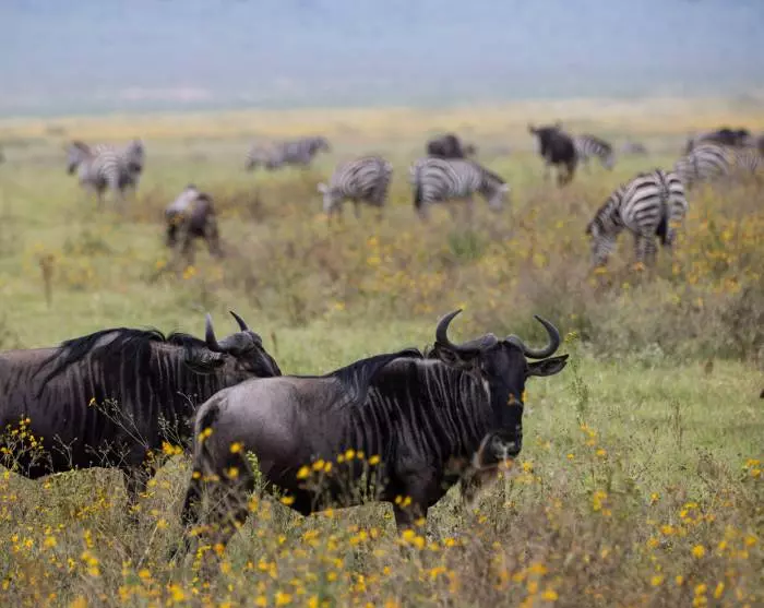 De enige soort klassieke safaridieren die je hier niet zult vinden, is de giraffe. Je kunt onderweg naar beneden in de krater nadenken over waarom dit is. Verder kun je hier alle safaridieren vinden – en in grote aantallen! Olifanten, zebra’s, gnoes, buffels, leeuwen, flamingo’s, nijlpaarden, antilopen, ooievaars, hyena’s, jakhalzen – misschien heb je zelfs het geluk om de bedreigde zwarte neushoorn te zien.