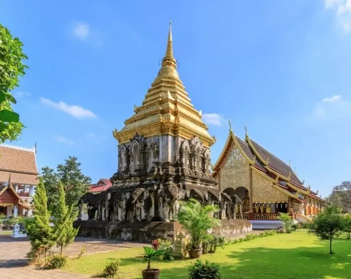 Je fietst door de rustige, smalle straatjes van Chiang Mai naar de prachtige Wat Inthakhin Sadue Mueang-tempel, beroemd om het 700 jaar oude Witte Boeddhabeeld. De fietstocht gaat verder langs het Drie Koningen Monument naar de Tha Phae Poort, waar handelaren ooit hun waren brachten tijdens de bloeitijd van de stad. Hier zal je gids je vertellen over de vroegere rol van Chiang Mai als handelscentrum. Vervolgens ga je naar de nabijgelegen Somphet Markt, waar je de lokale sfeer kunt opsnuiven en kleurrijk fruit en zoete lekkernijen kunt proeven. Daarna bezoek je Chiang Mai’s oudste tempel, Wat Chiang Man, met een 1.800 jaar oude kristallen Boeddha en een 2.500 jaar oude marmeren Boeddha. Ten slotte bezoek je het grootste monument van de stad: het iconische Wat Chedi Luang, dat ooit de thuisbasis was van de Smaragden Boeddha die nu in de Wat Phra Kaew-tempel in Bangkok staat.