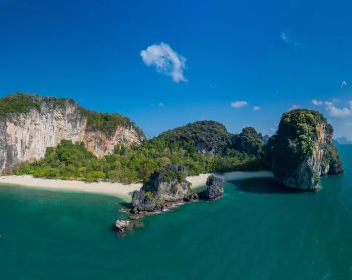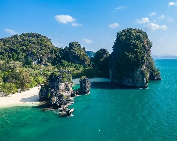 Een zandbank verbindt Pak Bia Island met Lao Lading Island, ook bekend als Paradise Island, de laatste stop van deze excursie. Het strand is opgedeeld: aan de ene kant kunt u zwemmen en snorkelen tussen de kleurrijke tropische vissen en aan de andere kant liggen de boten keurig geparkeerd in het zand. Vanaf het strand heeft u een prachtig uitzicht op de indrukwekkende kalksteenrotsen.