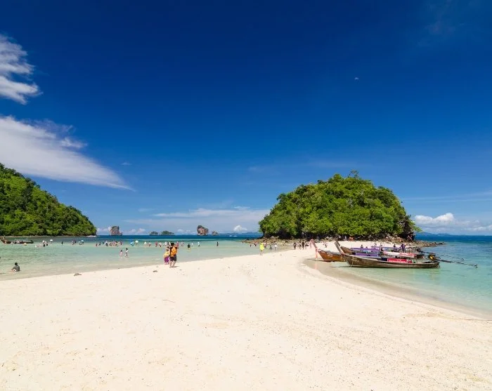 Na ongeveer 30 minuten komt u aan bij Koh Poda, een van de mooiste eilanden in de Andamanzee. Het eiland staat bekend om zijn ongerepte stranden met zacht, wit zand dat de kristalheldere zee ontmoet. Hier heeft u tijd om te snorkelen tussen tropische vissen, te zwemmen of simpelweg te zonnebaden. U kunt ook onder een van de schaduwrijke bomen ontspannen en genieten van het adembenemende uitzicht. Voor een extra gevoel van afzondering, kunt u verder langs het strand wandelen om uw eigen kleine, afgelegen paradijsje te vinden. Hoe verder u gaat, hoe meer u een Robinson Crusoe-gevoel zult ervaren.