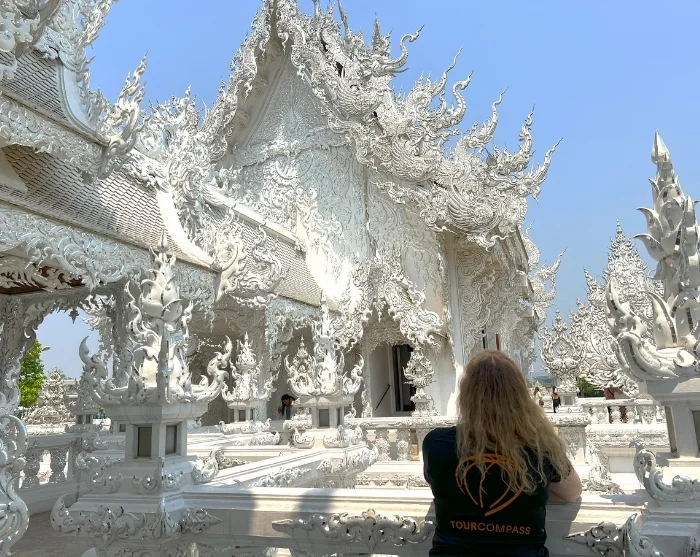 Onderweg naar Chiang Rai bezoek je de indrukwekkende Rong Khun Tempel, beter bekend als de Witte Tempel. Dit moderne meesterwerk uit 1997 is gemaakt door de lokale kunstenaar Chalermchai Kositpipat en onderscheidt zich sterk van de traditionele tempels in Thailand. De unieke witte en zilveren façade symboliseert zuiverheid en verlichting, terwijl de vele details zowel religieuze als verrassend moderne verwijzingen bevatten.