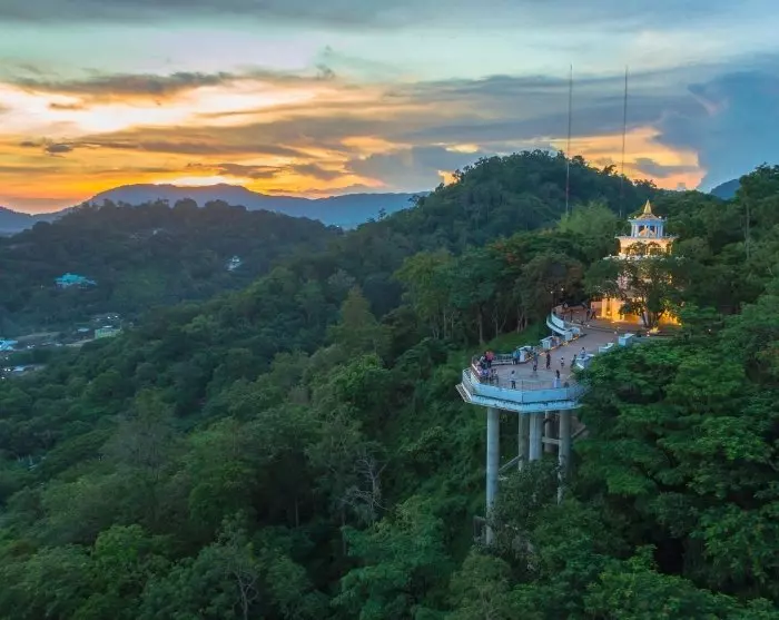 Op een van de avonden mag u een zonsondergang-excursie naar Khao Rang Hill niet missen. Dit is een van de beroemdste uitkijkpunten van Phuket. Hier heb je een prachtig panoramisch uitzicht over de stad, de nabijgelegen eilanden en het glooiende landschap.