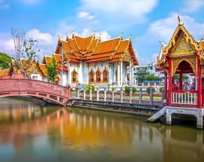 De reis begint in de bruisende hoofdstad van Thailand, Bangkok. Hier rijden kleurrijke tuktuks langs moderne wolkenkrabbers van staal en glas, die zij aan zij staan met prachtige tempels.