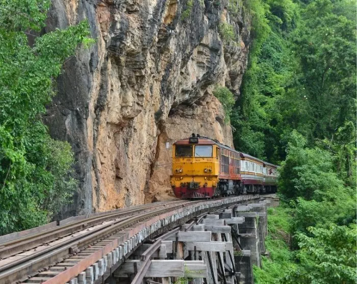 Daarna gaat de reis verder naar de wereldberoemde Brug over de rivier Khwae Yai, die deel uitmaakt van de Dodenspoorlijn.