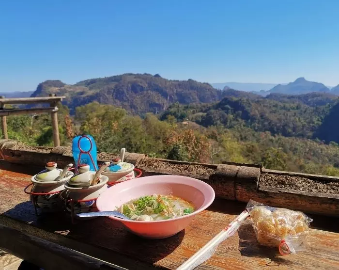 Als je een ochtendmens bent, kun je ervoor kiezen om de zonsopgang te zien vanuit de tempel Wat Phra That Doi Kongmu. De excursie begint bij het hotel om ongeveer 5.00 of 5.30 uur, zodat je op tijd bij de top bent om de zon te zien opkomen. De tempel staat bekend om zijn indrukwekkende stupa en uitkijkpunt en staat op een heuveltop met een prachtig panoramisch uitzicht over de mistige valleien van Mae Hong Son en de omliggende bergen. Terwijl de zon langzaam opkomt boven de bergen, ervaar je de serene rust en het gouden licht dat het landschap vult, waardoor een bijna magische sfeer ontstaat.