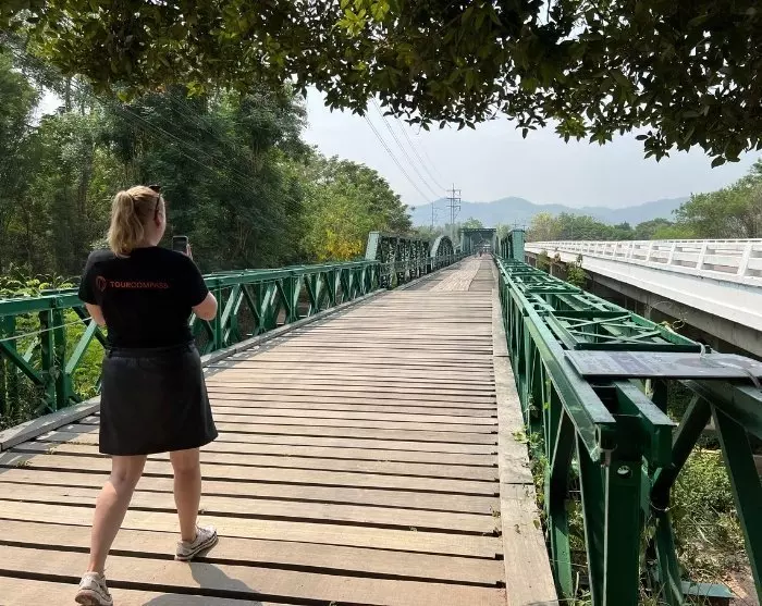 De excursie gaat verder naar de historische Ta-Pai-brug in de buurt van Pai. De brug werd in 1942 gebouwd door Japanse troepen tijdens de Tweede Wereldoorlog als onderdeel van hun aanvoerroute. Na de oorlog werd de oorspronkelijke brug verwoest, maar later werd hij herbouwd en staat hier nu als een belangrijk herkenningspunt en symbool van de geschiedenis van de regio.